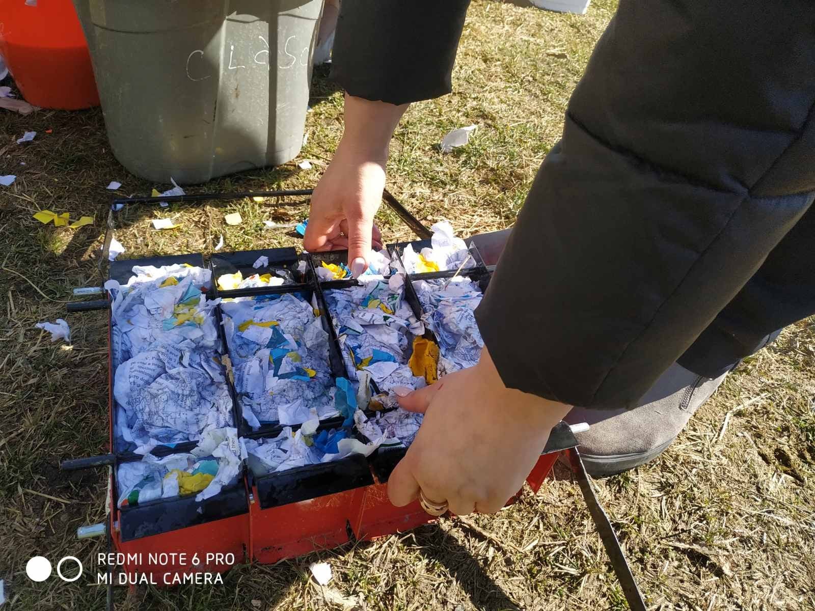 Au alcătuit un grafic, astfel încât în fiecare săptămână să fie de serviciu câte o clasă diferită pentru a recicla deșeurile de hârtie colectate în paleți. Rezultatele finale, pe care le puteți vedea în fotografii, sunt apoi distribuite oamenilor din sate care nu au acces la maculatură, majoritatea dintre ei persoane vârstnice care au dus lipsa paleților pe timpul iernii.